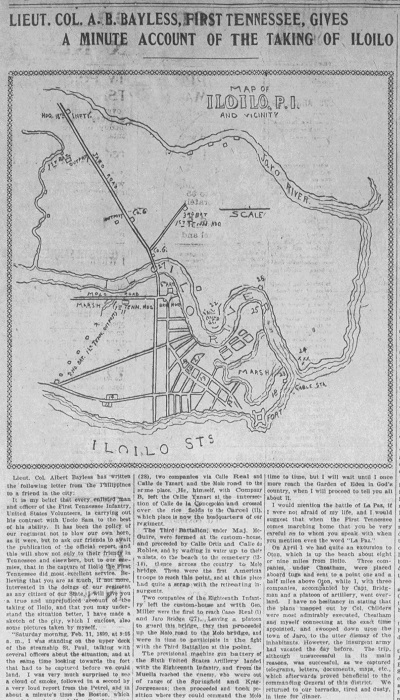 LIEUT. COL. A. B. BAYLESS, FIRST TENNESSEE, GIVES A MINUTE ACCOUNT OF THE TAKING OF ILOILO