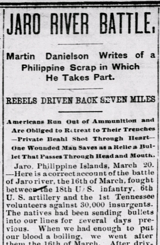 MARTIN H DANIELSON, B 18TH US INF, MARCH 28 1899