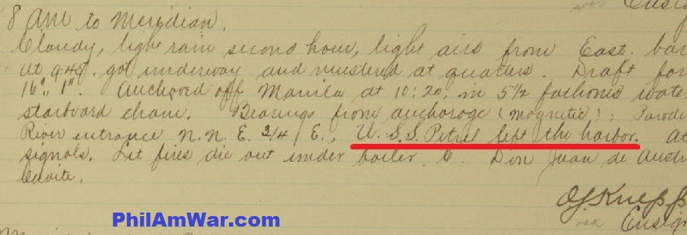 The departure of USS Petrel from Manila Harbor between 8am and noon on January 4, 1899 was observed by another ship, the USS Concord.